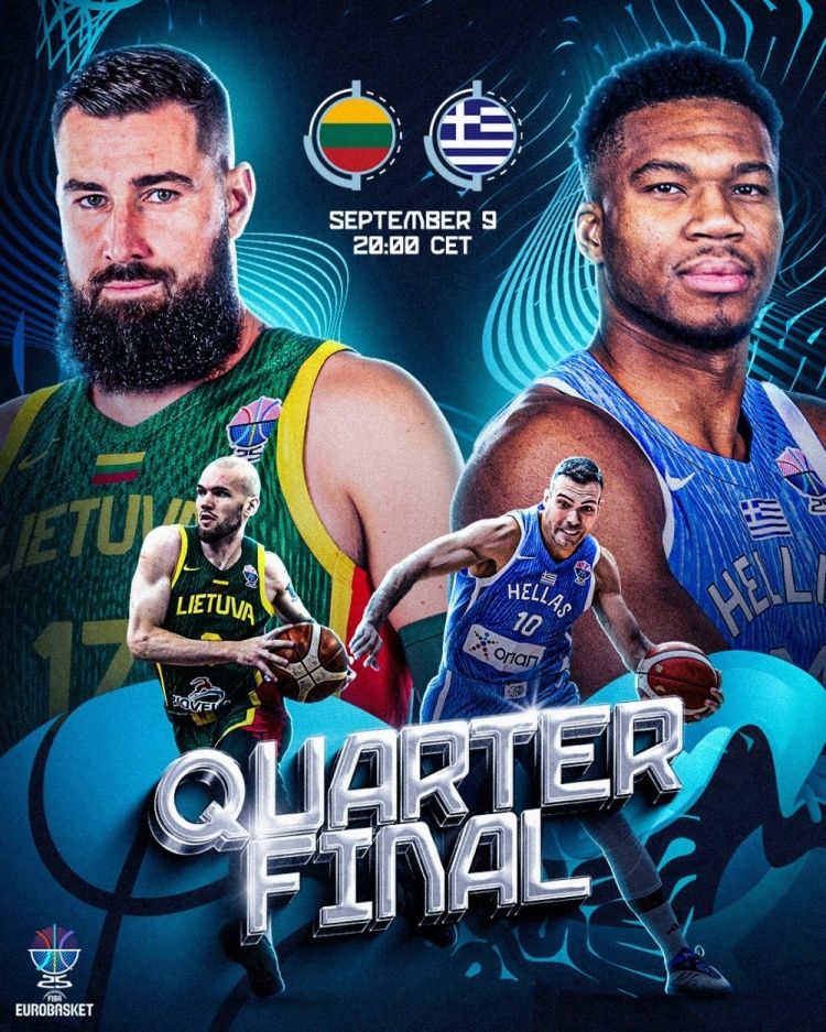 9月10日讯 男篮欧锦赛1/4决赛,希腊对阵立陶宛。