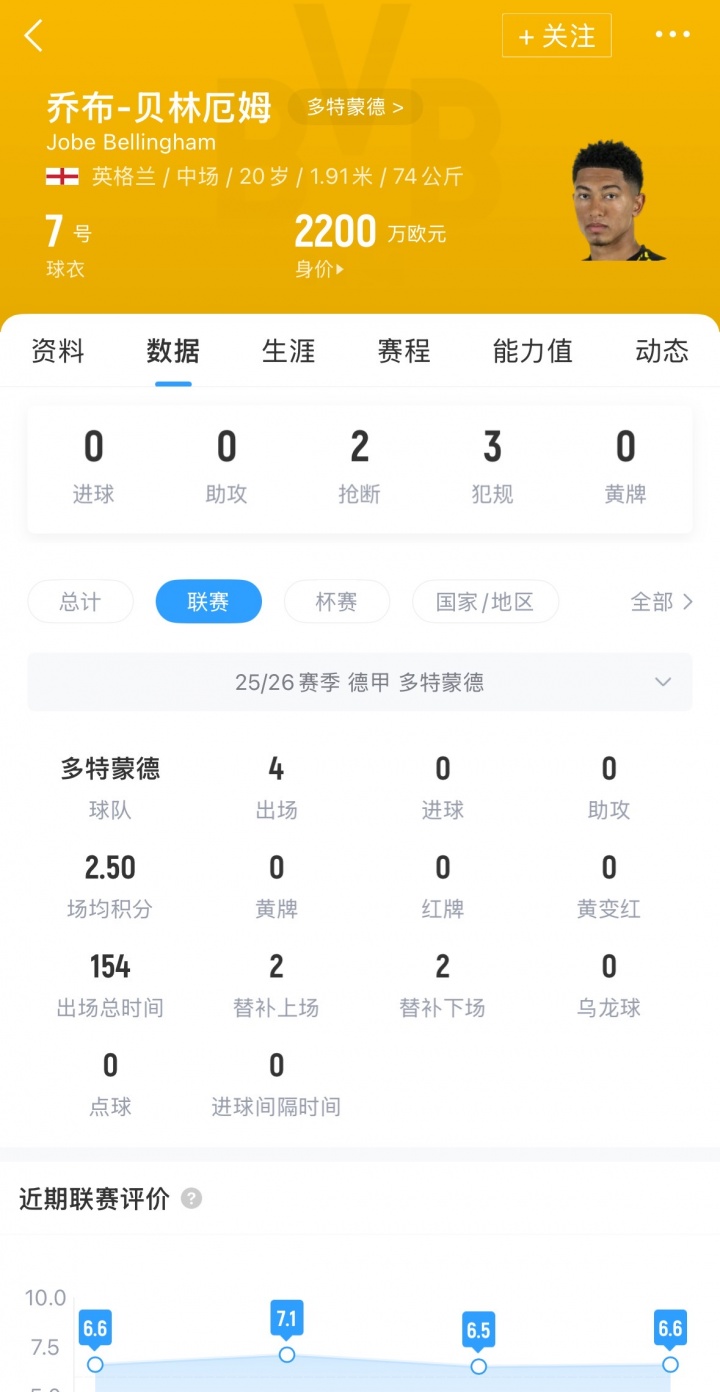还需适应!20岁小贝林3050万加盟多特,6场0球0助+连续3场替补